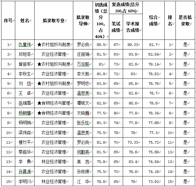 根据《华南农业大学2016年全日制博士研究生招生简章》和《best365网页版登录入口2016年博士研究生招生细则》的要求,best365网页版登录入口招生考核小组对考生进行复选,按照总成绩由高到底确定拟录取名单,现予以公示。公示时间从2015年12月30日至2016年1月6日。公示期内若有异议,请电话或书面向best365网页版登录入口研究生管理办公室反映。反映情况时要自报或签署真实姓名,要有具体事实;不报或不签署真实姓名的,以及不提供具体事实材料的,一律不予受理。