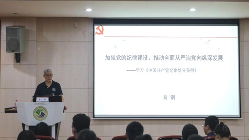 为扎实推进党纪学习教育,5月11日下午,best365网页版登录入口党委召开党纪学习教育专题培训会,邀请了广东培正学院马克思主义学院院长易钢作题为《加强党的纪律建设,推动全面从严治党向纵深发展——学习〈中国共产党纪律处分条例〉》的报告。会议由学院党委书记张晖主持。