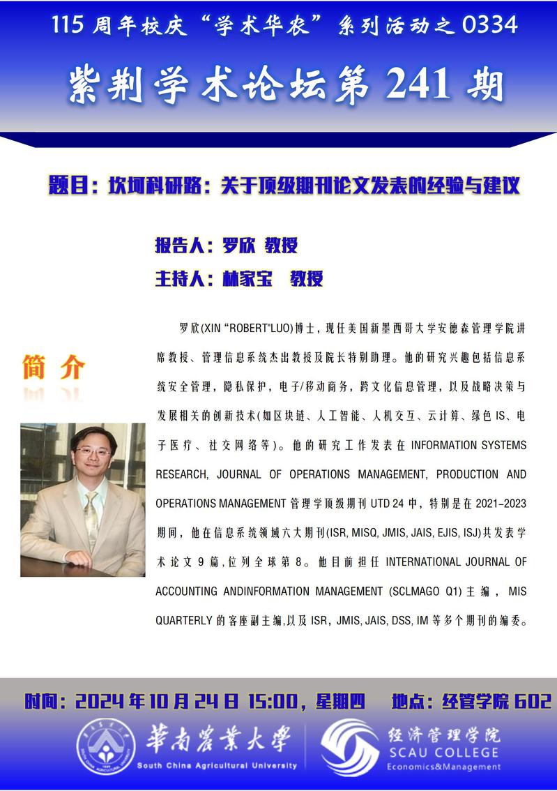 115周年校庆“学术华农”系列活动之0334:紫荆学术论坛第241期