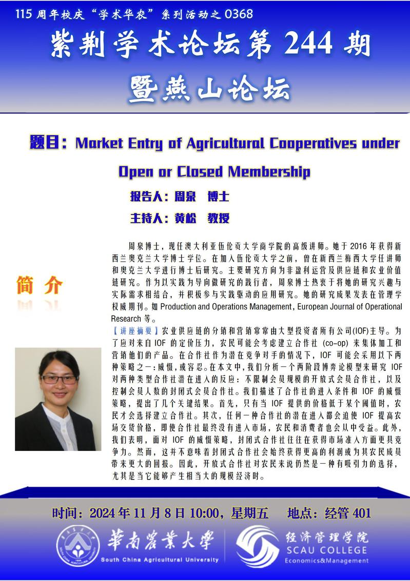 115周年校庆“学术华农”系列活动之0369:紫荆学术论坛第244期暨燕山论坛