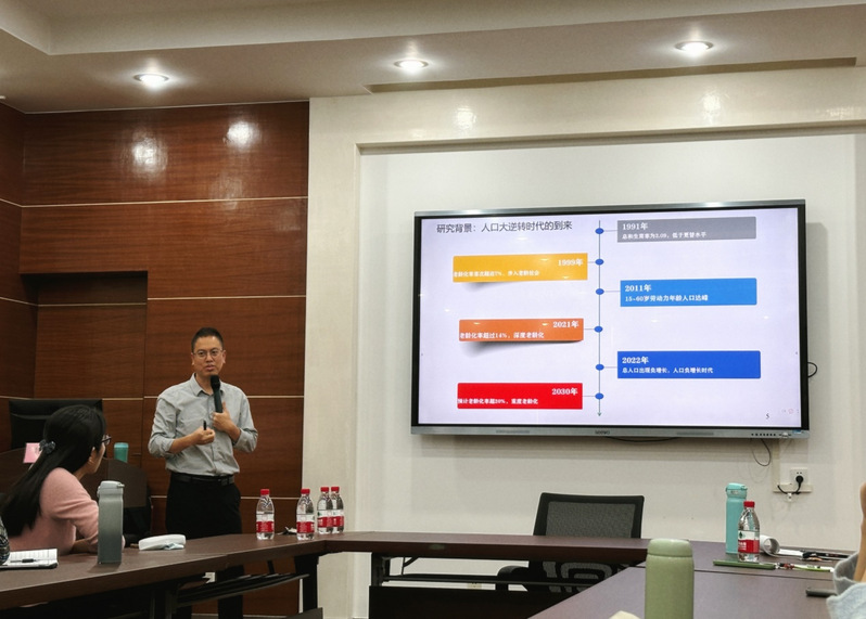 在魏下海教授报告过程中,现场师生们认真聆听,在讲座尾声,魏教授也与大家就相关话题进行了深入的互动交流。魏教授的分享让与会师生对机器人对劳动力市场的影响有了更深的理解,让大家收获颇丰,本次学术报告在热烈的掌声中圆满结束。