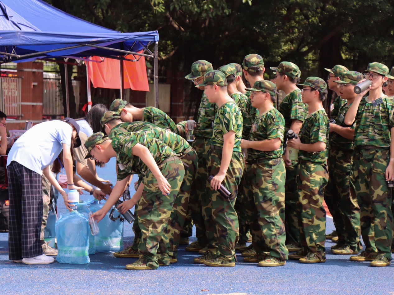 作为新生入学后的 “第一课”,军事技能训练是锤炼意志品质、塑造优良学风、厚植家国情怀的重要载体。学院党委高度重视本次军训工作,始终将其作为落实立德树人根本任务、推进 “三全育人” 综合改革的关键环节,多次召开专题会议部署军训思想引领与组织、安全保障工作,要求全体工作人员以“高标准、严要求、暖服务”的工作态度,确保军训既“有硬度”又“有温度”。在训练过程中,学院领导多次深入训练场慰问新生与教官,准备专属凉茶,为同学们加油鼓劲;辅导员全程跟班,实时关注学生思想动态与身体状况,及时解决训练生活中的实际困难,为军训工作的顺利开展筑牢了组织保障,也为学生们在各项评比中脱颖而出奠定了坚实基础。
