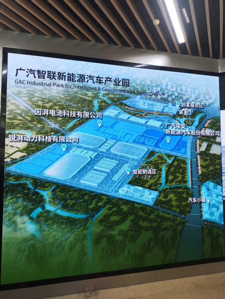 广汽智联新能源汽车产业园的全景规划图则让学子们感受到产业生态的磅礴张力。这个以广汽埃安为核心的产业集群,串联起因湃电池、锐湃动力、智能制造区及汽车小镇等板块,形成“电池-动力-整车-配套”的垂直整合链条。