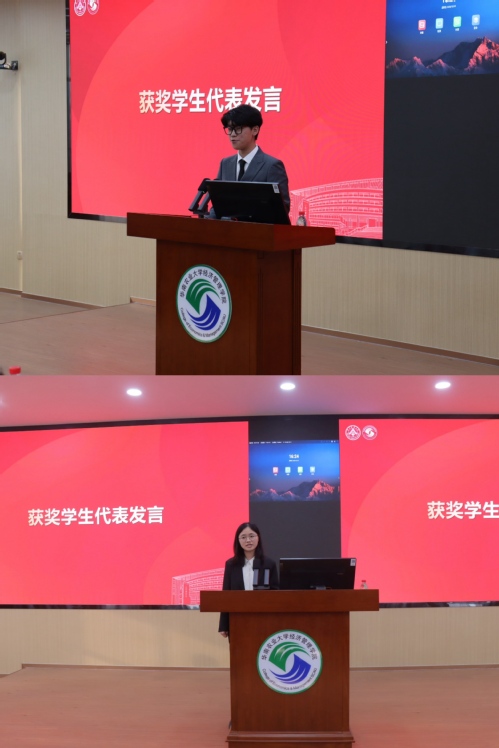 获奖学生代表许景焜、受助学生代表张冰冰分别发言,分享求学感悟,向学院与校友致以感谢,并表示将以此为契机,砥砺前行、勤奋学习,未来以实际行动传递爱心、贡献社会。